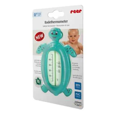 Un thermomètre de bain permet de s’assurer que l’eau est à la bonne température avant d’y baigner votre petit(e). Il est par ailleurs conseillé de ne pas laisser bébé trop longtemps dans le bain pour qu’il ne prenne pas froid. Le thermomètre pourra alors vous permettre de suivre l’évolution de la température du bain! Thermomètre de bain forme tortue de la marque allemande REER est indispensable pour la nouvelle maman et son bébé
