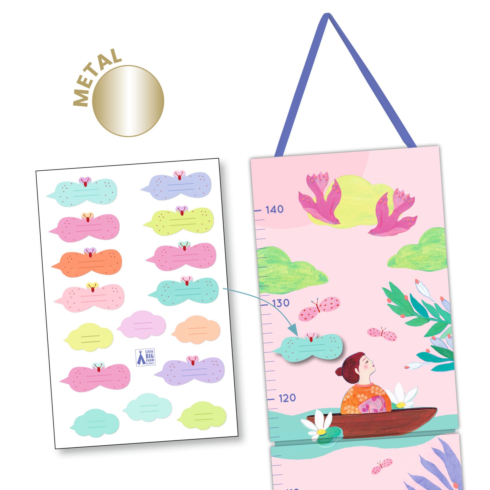 Une grande toise murale avec de nombreux stickers repositionnables pour s’évader le temps d’une promenade près du lac. Un bel objet de décoration idéal pour mesurer les enfants au fil du temps (jusqu’à 1,40 m). Et lorsque l’enfant est grand, on la range dans sa jolie boite pour un tendre souvenir.