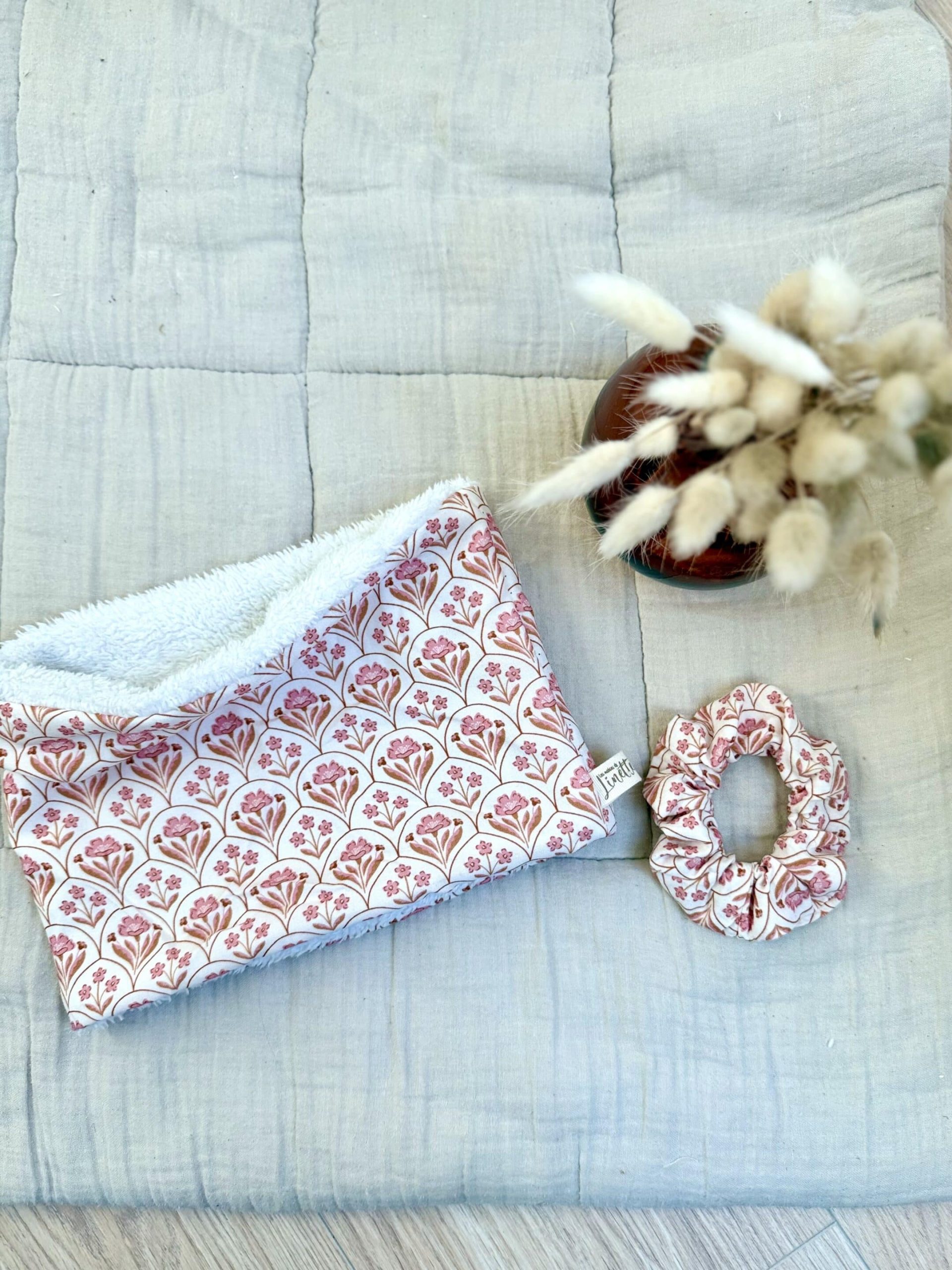 L’article indispensable pendant l’automne et l’hiver : le tour de cou. Pratique et rapide à enfiler, votre enfant sera protégé du vent et du froid et sera emmitouflé par la douceur du tissu doudou ou moumoute. Vous avez la possibilité de rajouter son prénom en flex thermocollé et même de choisir le tissu de votre choix !