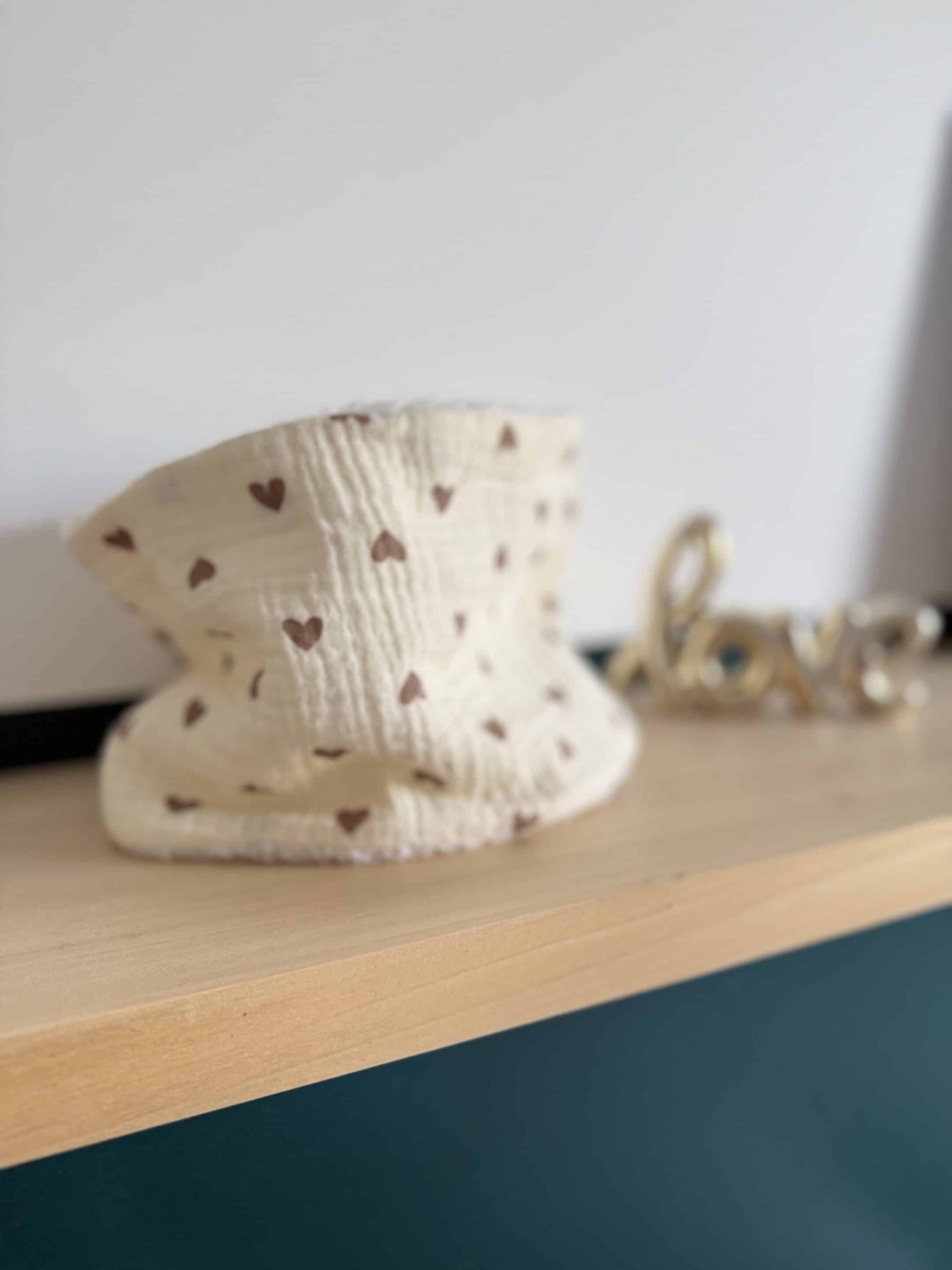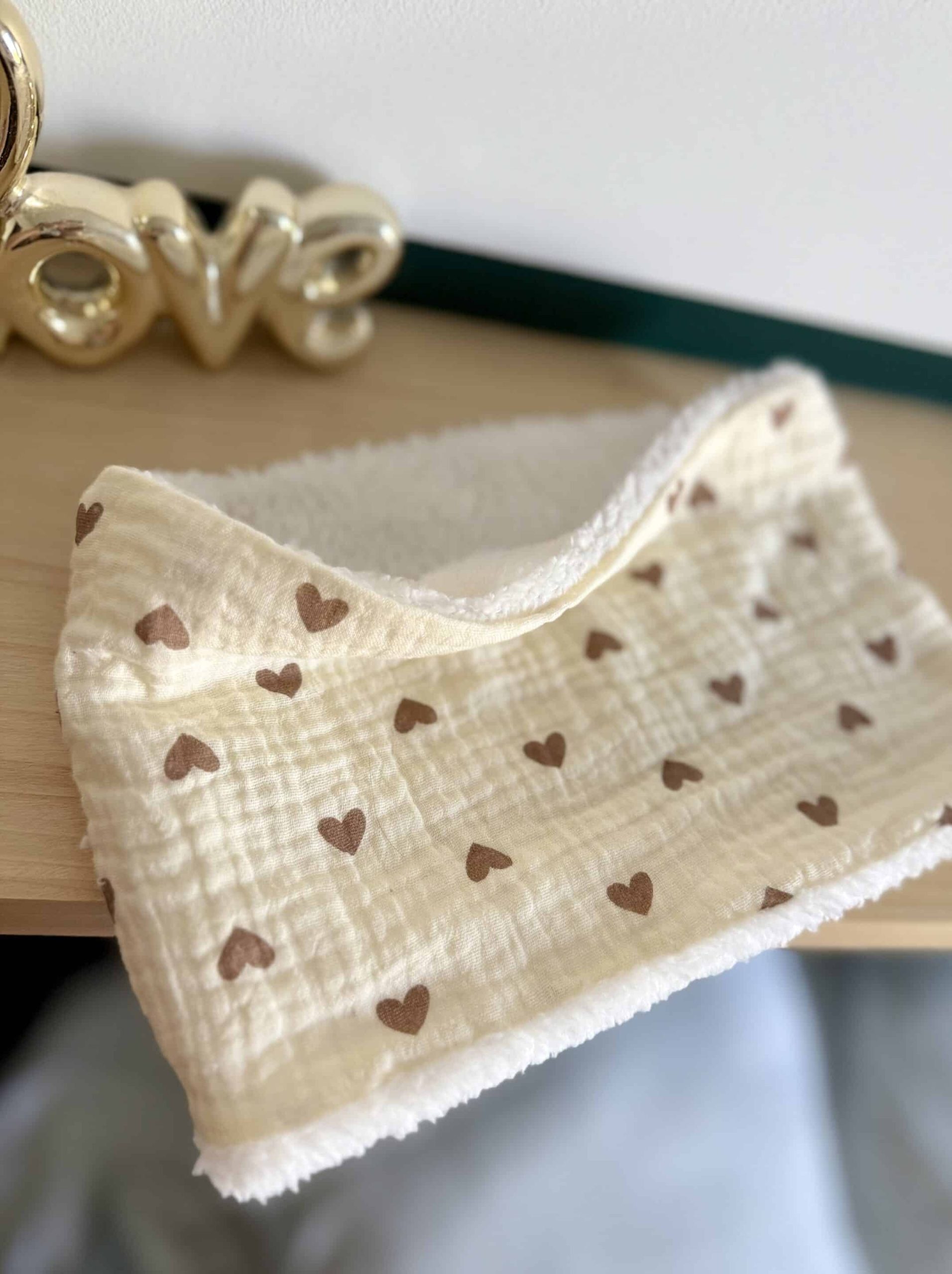 Tour de cou, double gaze coeurs camel