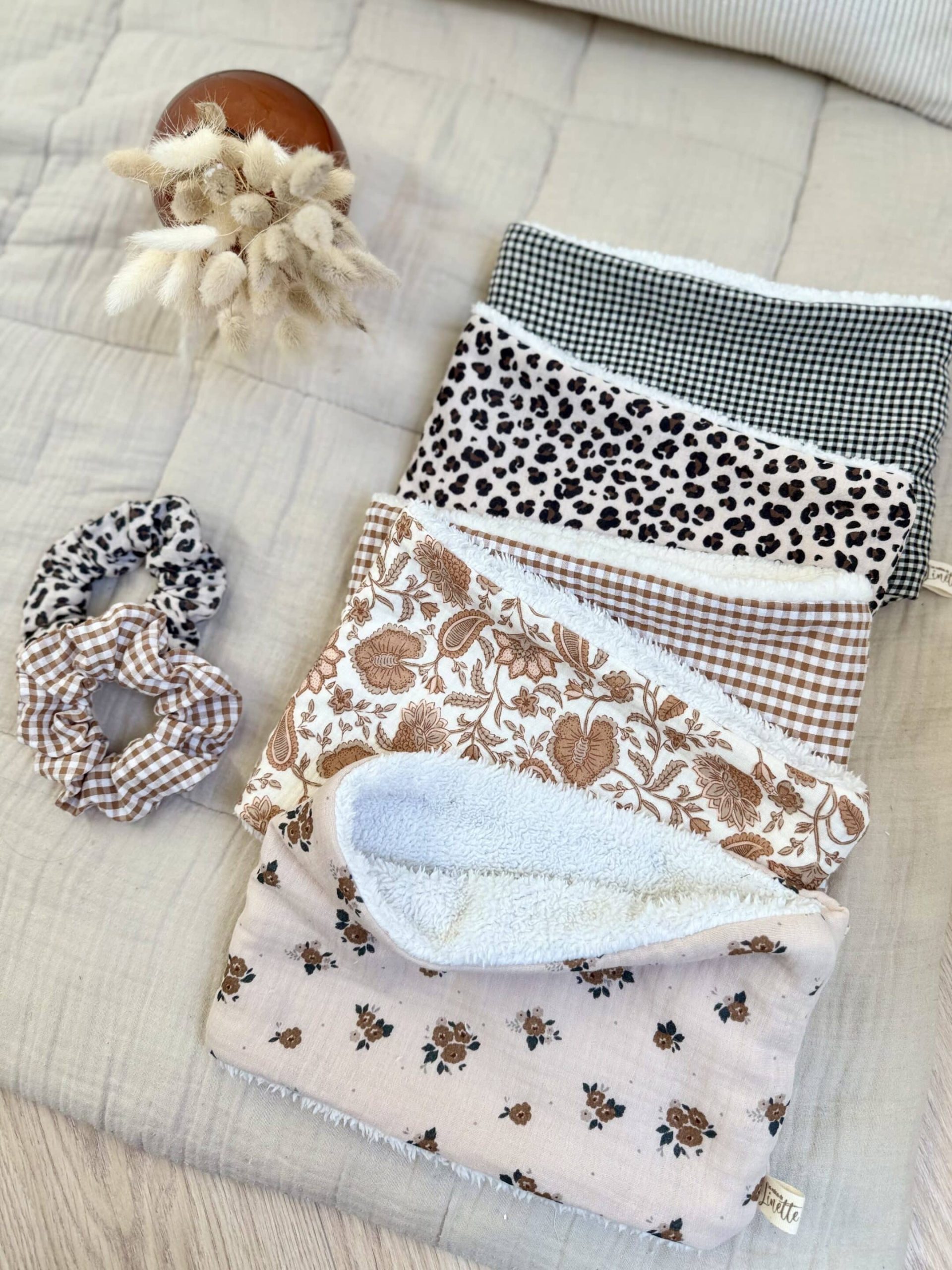 L’article indispensable pendant l’automne et l’hiver : le tour de cou. Pratique et rapide à enfiler, votre enfant sera protégé du vent et du froid et sera emmitouflé par la douceur du tissu doudou ou moumoute. Vous avez la possibilité de rajouter son prénom en flex thermocollé et même de choisir le tissu de votre choix !