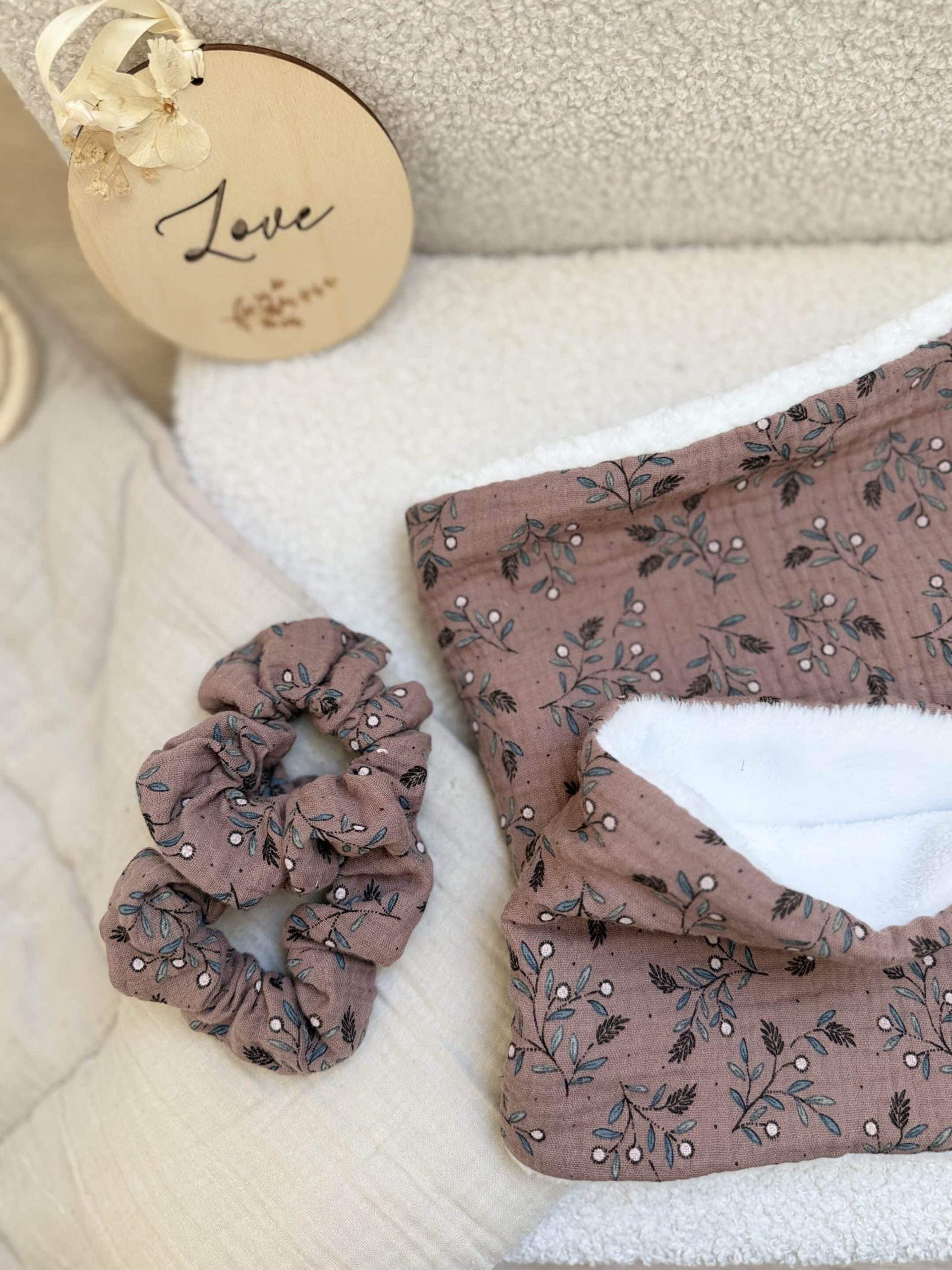 Tour de cou / snood avec un coté en coton et un côté en doudou ou moumoute.