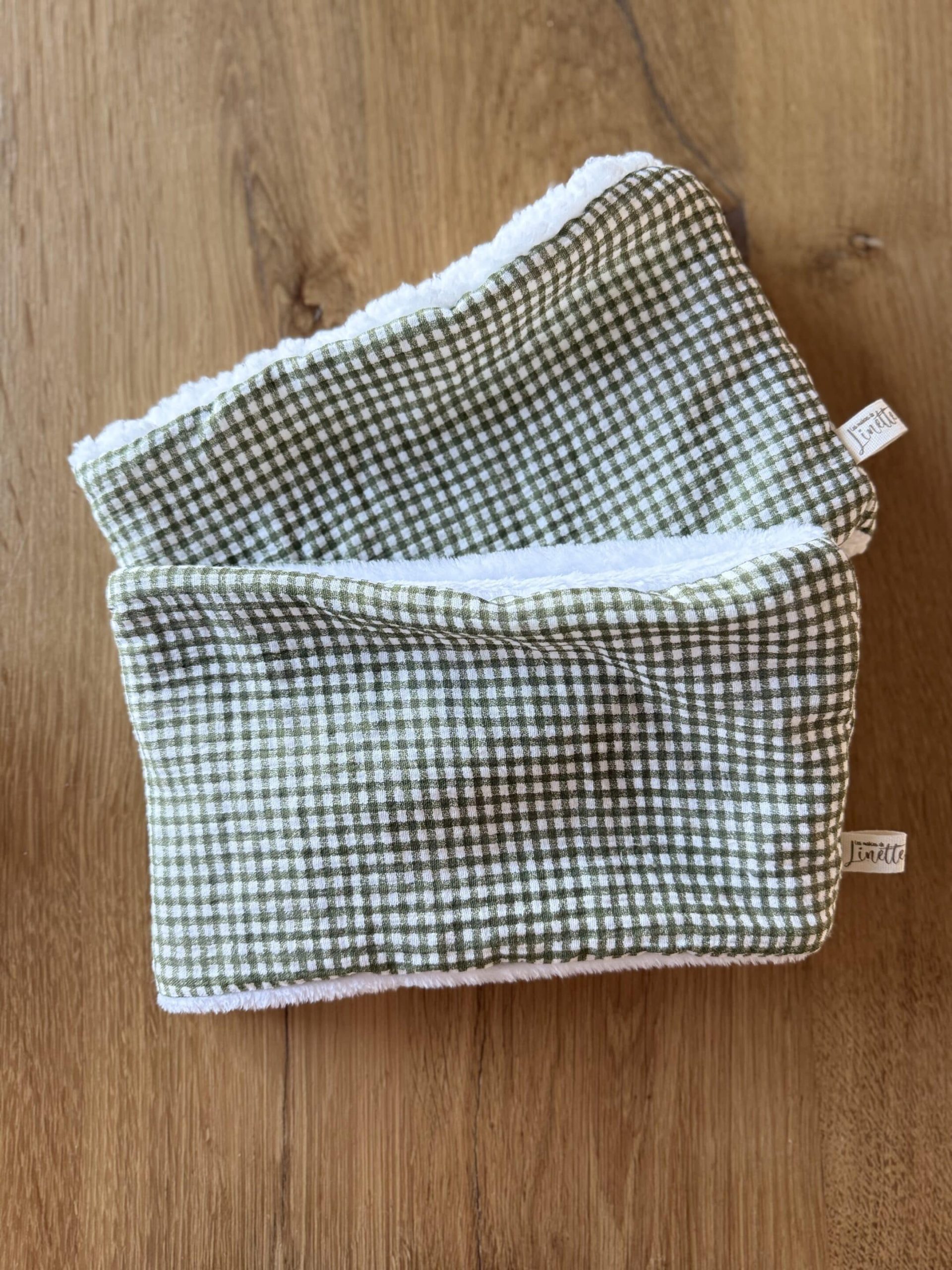 L’article indispensable pendant l’automne et l’hiver : le tour de cou. Pratique et rapide à enfiler, votre enfant sera protégé du vent et du froid et sera emmitouflé par la douceur du tissu doudou ou moumoute. Vous avez la possibilité de rajouter son prénom en flex thermocollé et même de choisir le tissu de votre choix !