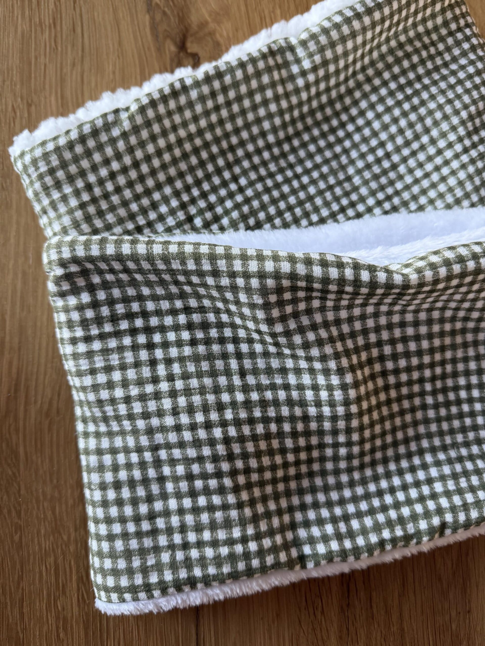 Tour de cou / snood avec un coté en coton et un côté en doudou ou moumoute.
