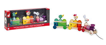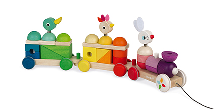 Découvrez le train géant multicolore de Janod, un jouet d’éveil 2 en 1 avec un jouet à tirer et un jeu à encastrer pour apprendre les formes et les couleurs. Votre enfant va s’amuser à promener ce train et développer sa motricité ainsi qu’à s’amuser avec ces blocs de constructions colorés. Un, deux ou trois wagons pour ce train original et plein de couleurs. Avec ce jouet d’éveil incontournable et très coloré vous êtes sûr de faire plaisir ! Une très belle idée de cadeau de naissance. Dimensions du jouet : 52 x 8,5 x 18 cm