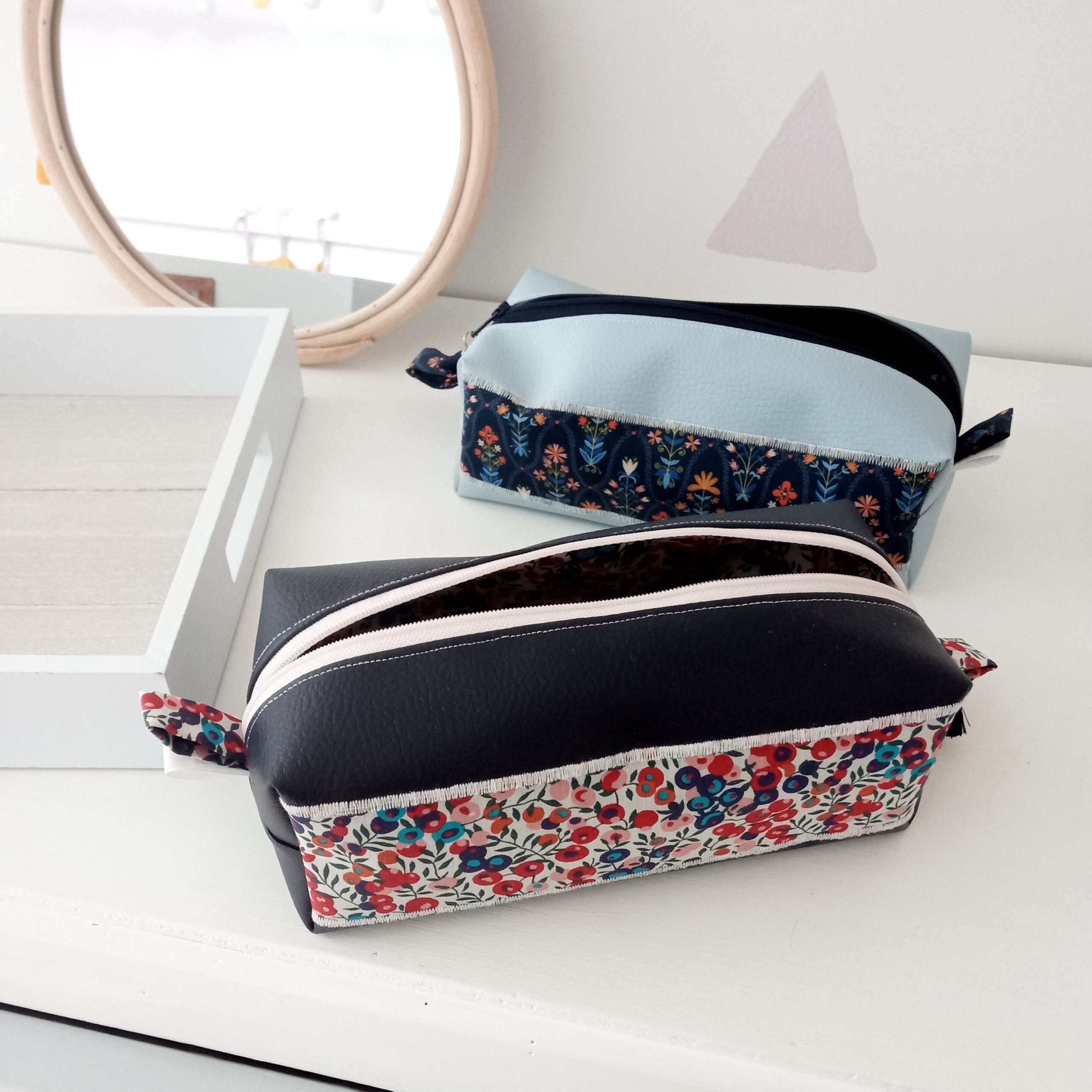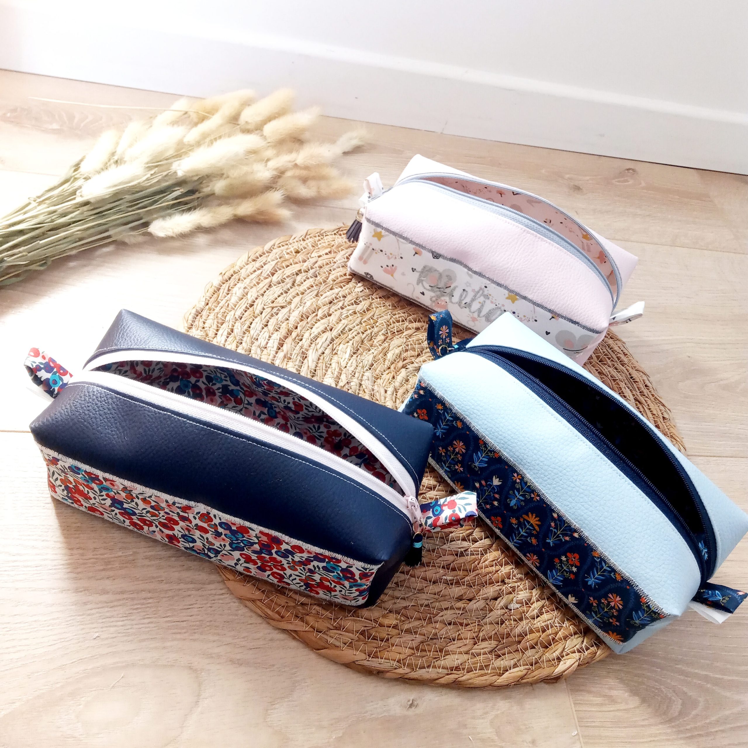Trousse en simili cuir et coton, doublé avec le coton choisis pour l’extérieur.