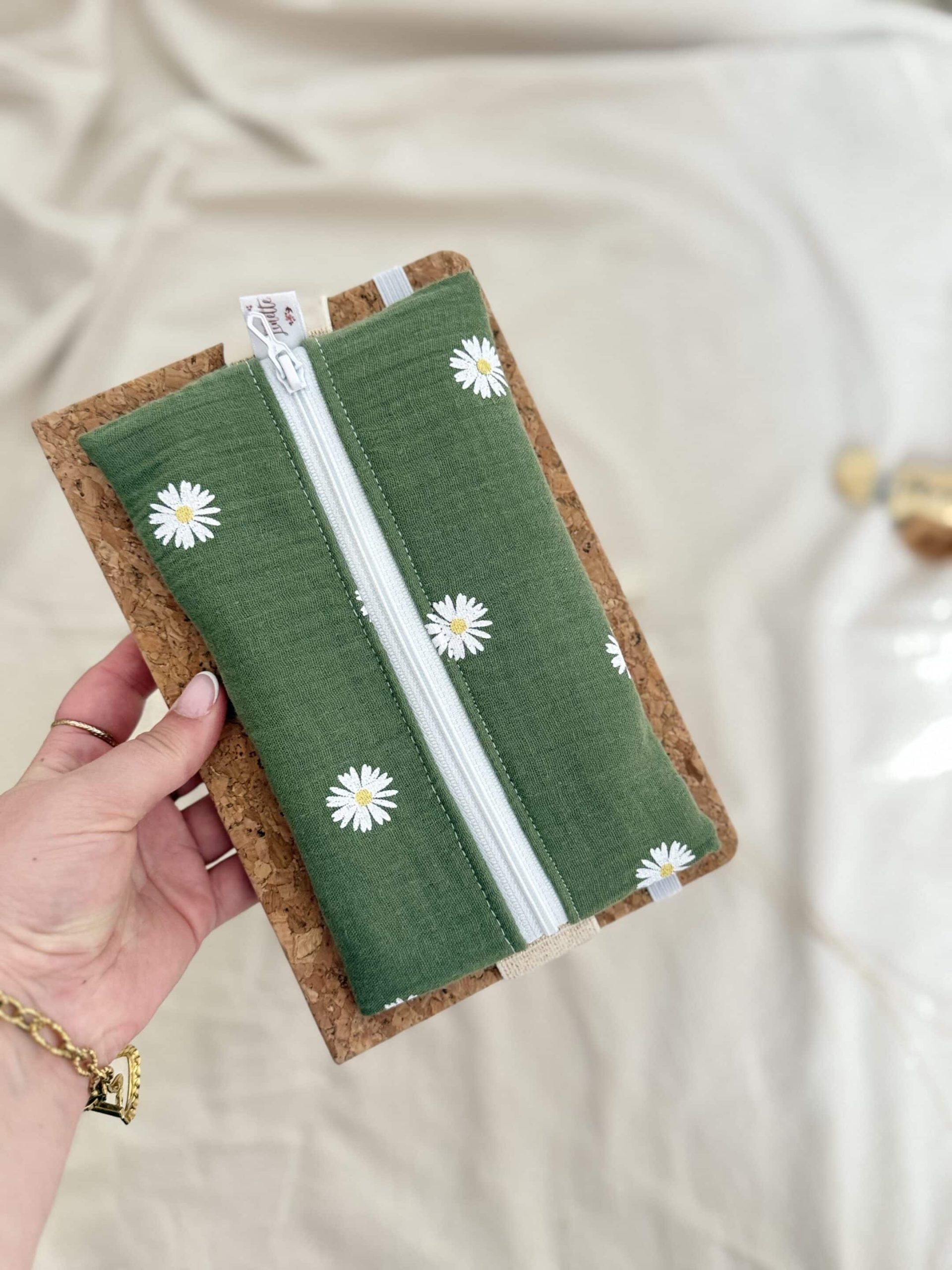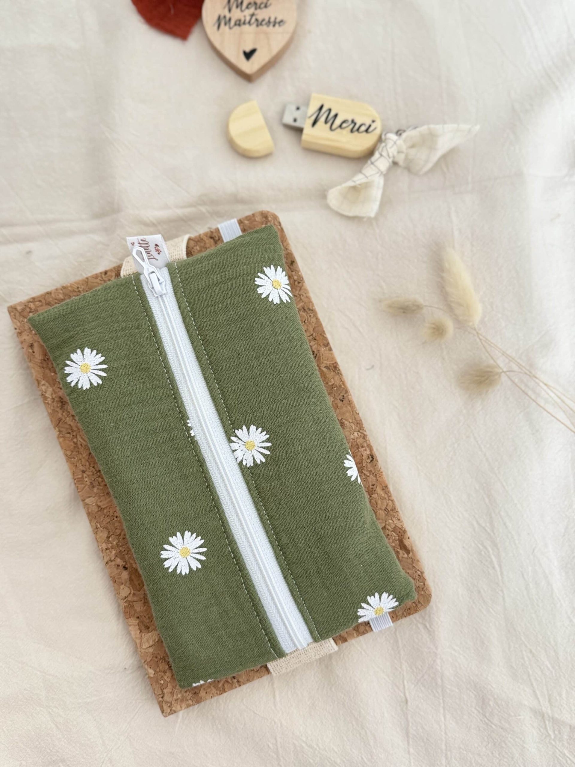 Trousse plate élastiquée, double gaze marguerites