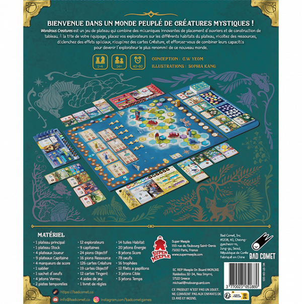 Bienvenue dans le monde de Wondrous Creatures ! Vous êtes un fan, un passionné de créatures qui participera à la création de la première réserve de ces créatures au monde. Ouvrez ce bel écrin et découvrez un jeu chatoyant proposant deux mécaniques de jeu centrales : placement d’ouvrier et construction de tableau. https://youtu.be/SsP6XmWtyF8